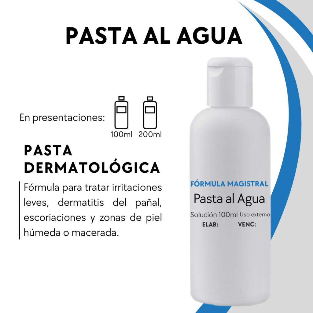 La Pasta al Agua forma una barrera protectora que aísla la piel de la humedad, calma la irritación y favorece la cicatrización gracias al óxido de zinc y sus excipientes absorbentes.